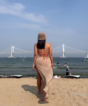 광안리 해수욕장 태닝하는 요가강사 몸매