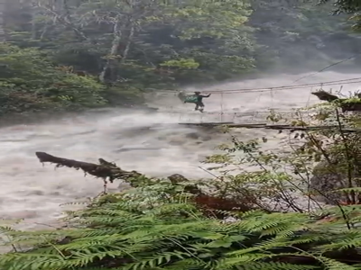 범람하는 다리를 건너는 미X놈